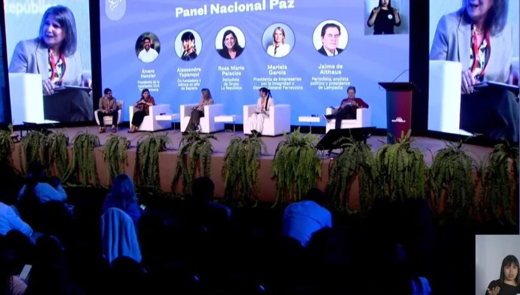 En el marco de la cumbre, Mariela García de Fabbri, gerente general de Ferreycorp y presidenta de Empresarios por la Integridad, participó en el panel P de la Paz, en el que compartió espacio con destacadas figuras para reflexionar sobre el desafío de construir paz y gobernabilidad en nuestro país.